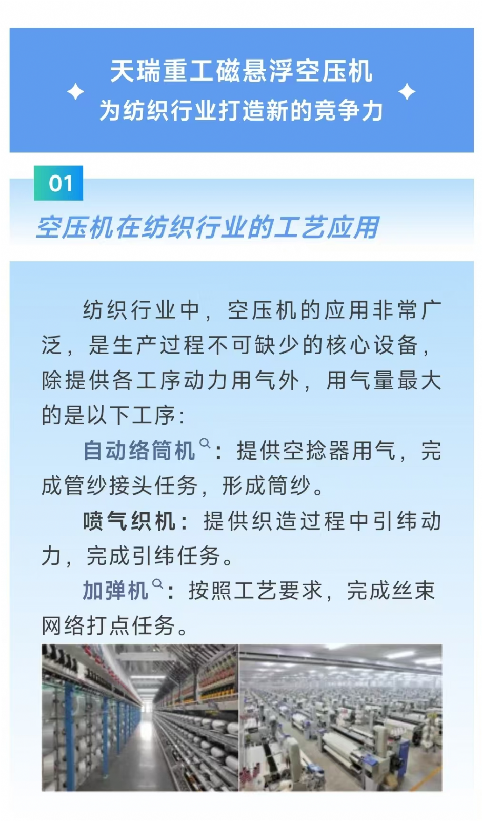 • 天瑞重工磁懸浮空壓機(jī):紡織行業(yè)噴氣織機(jī)的拍檔