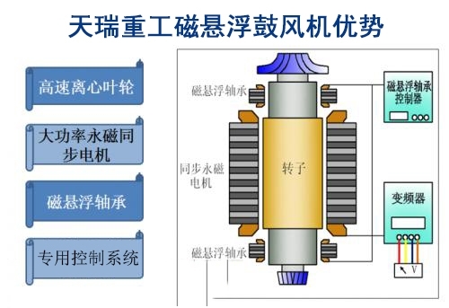 天瑞重工生產的磁懸浮鼓風機是一種高科技綠色節能環保產品。采用先進的磁懸浮軸承、三元流渦輪、高速永磁同步電機、高速變頻調速、智能化監測控制等技術,啟動時先懸浮后旋轉,無摩擦,無需潤滑,渦輪與轉子直聯,傳動零損失。與羅茨鼓風機比,節能30%......