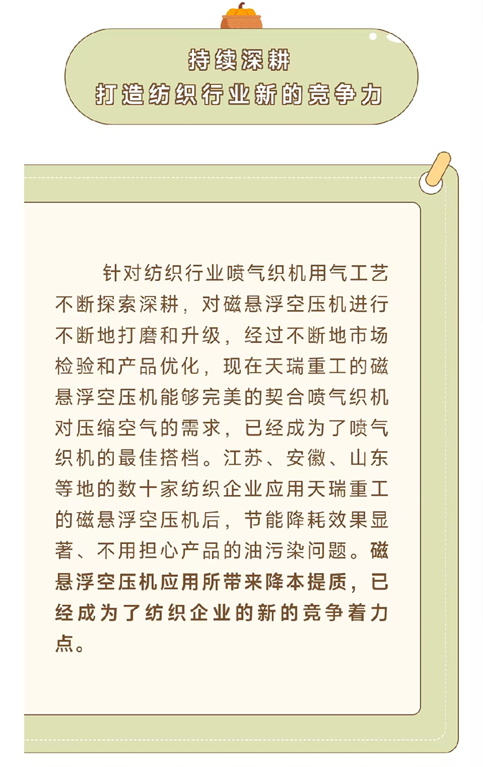 天瑞重工磁懸浮空壓機(jī):紡織行業(yè)噴氣織機(jī)的拍檔
