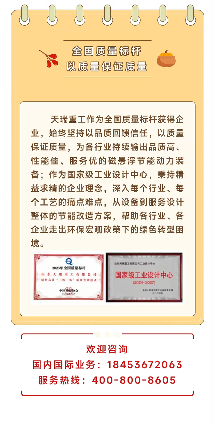 山東天瑞重工有限公司是一家從事磁懸浮動力技術(shù)研發(fā)的高新技術(shù)企業(yè),是國家企業(yè)技術(shù)中心,全國磁懸浮動力技術(shù)標(biāo)準(zhǔn)化工作組秘書處單位,山東省節(jié)能環(huán)保裝備產(chǎn)業(yè)鏈“鏈主”。