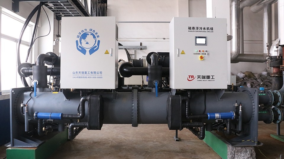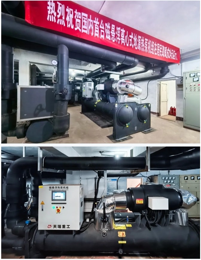 在2024年的供暖季,一場對傳統供暖方式的顛覆性技術革命悄然出現。2024年11月16日,天瑞重工自主研發的國內首臺磁懸浮離心式地源熱泵機組,在山東省濰坊市某住宅小區成功開機運行,標志著城市供暖進入綠色新紀元。冬季供暖是居民日常生活中重要的能源成本之一,傳統的供熱設備及供熱方式,往往伴隨著能耗高、環境污染等問題。磁懸浮離心式地源熱泵機組憑借其高 效節能、低噪舒適、免維護、智能化等特點,為冬季供暖帶來了全新的解決方案。